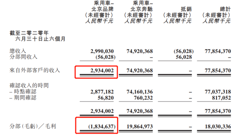 今年上半年,北京汽车营收和净利润均出现了不同程度的下滑,前文提到,现阶段北京汽车的收入和利润来源几乎完全依赖北京奔驰。上半年,北京品牌乘用车的相关收入仅为29.34亿元,同比下降71.5%,毛利为负18.34亿元。