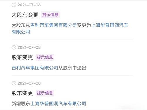 7月12日消息,此前,有工商信息显示,吉利汽车从极氪汽车(宁波杭州湾新区)有限公司股东中退出,且极氪汽车新增股东上海华普国润汽车有限公司。股权变更后,极氪汽车由华普国润全资控股,后者为上海华普汽车有限公司旗下子公司,浙江吉利控股集团持有华普汽车90%股份。