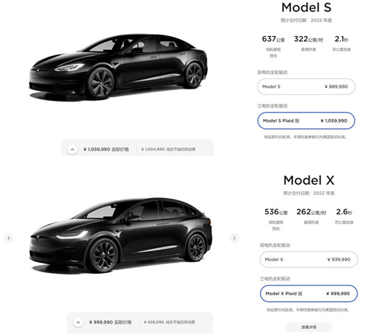 ——特斯拉不是一般同平台SUV更贵么?有Model X比Model S贵。实际上,这一代特斯拉车型的Plaid高性能版本,首次出现了Model S轿车价格大于等于Model X的情况。