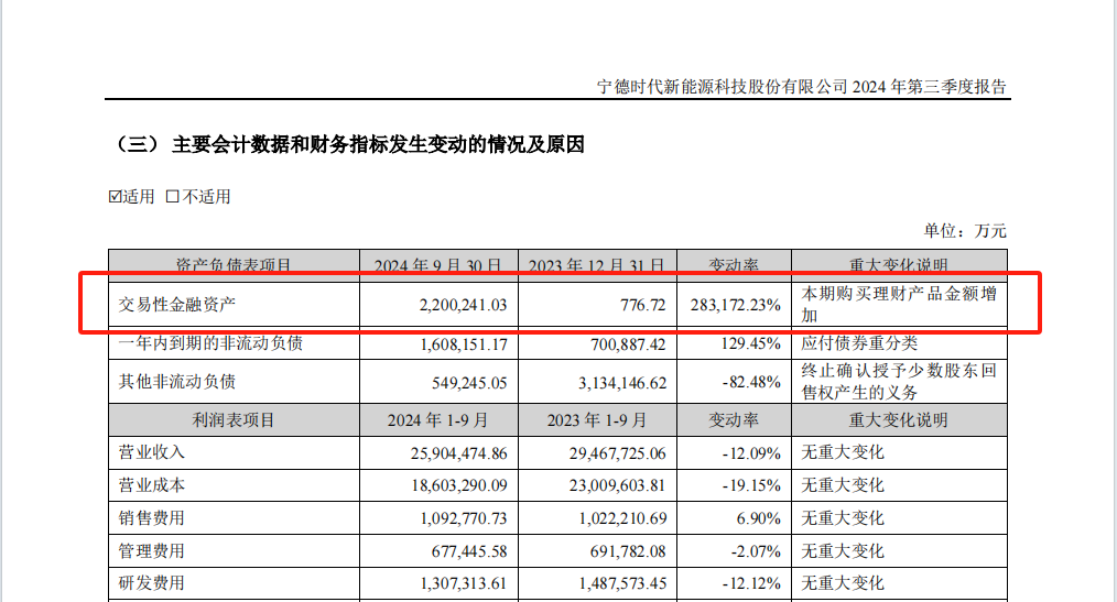 宁德时代三季度毛利率31%。还买了220亿的理财产品。