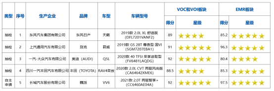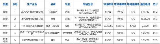 图1 2020年第一批测评车型
